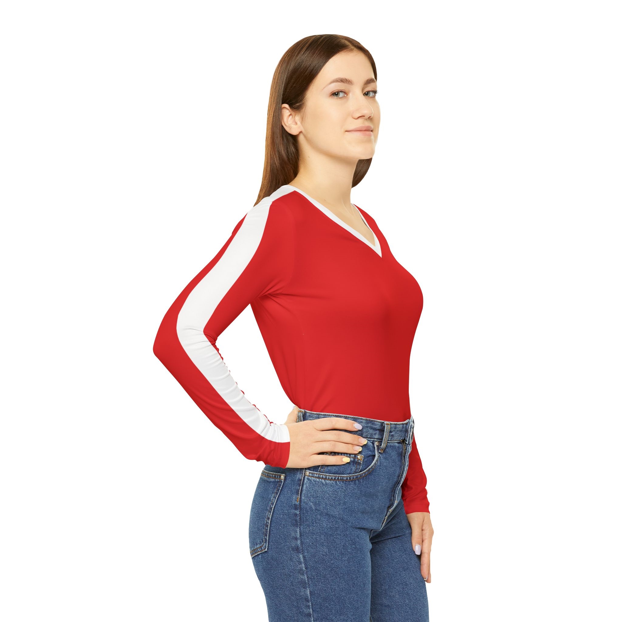 Women’s Red Vertical Striped Long Sleeve V-neck Shirt